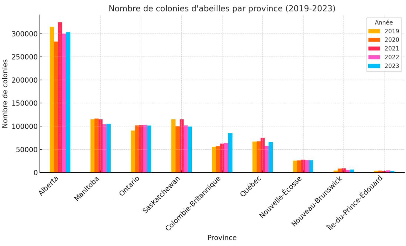 - Ontario et Colombie-Britannique : 59 % des apiculteurs.